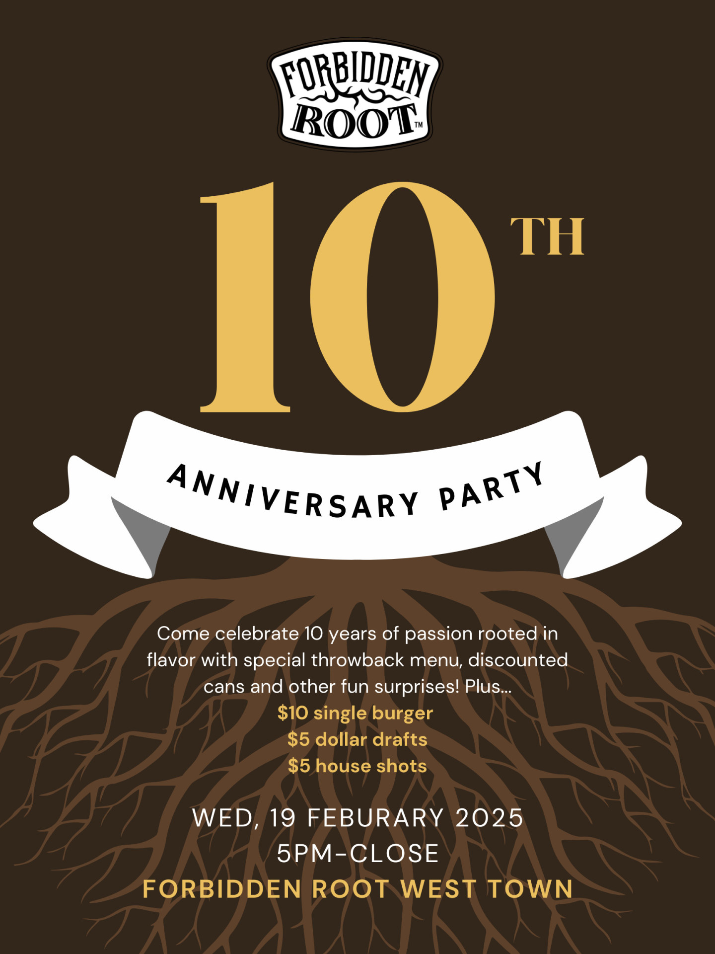 🍻Come celebrate 10 years of passion rooted in flavor with special throwback menu, discounted cans and